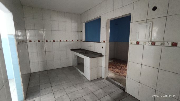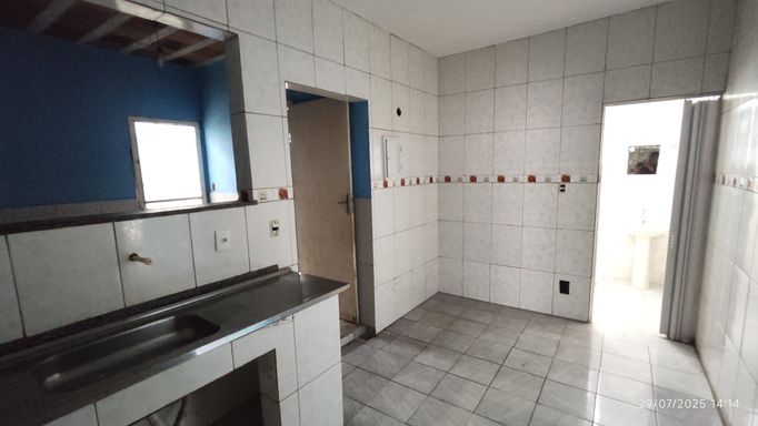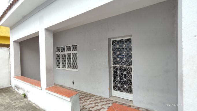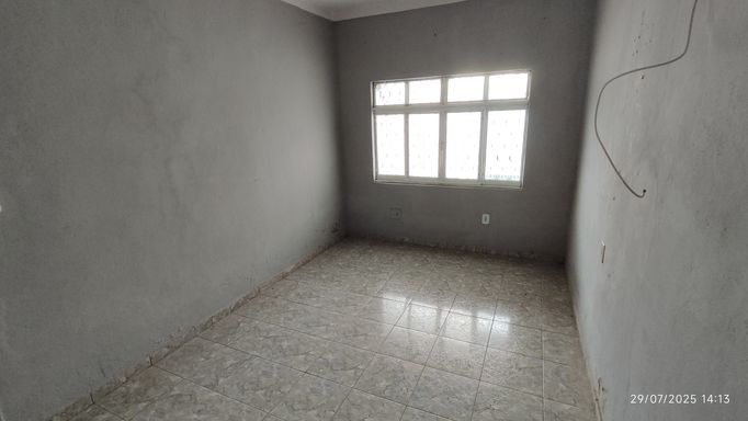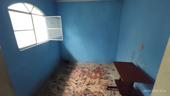 🏠 Quintal espaçoso, que pode ser usado como garagem para até 4 carros, varanda, sala de estar, sala de jantar, 3 quartos, banheiro, cozinha e área de serviço.