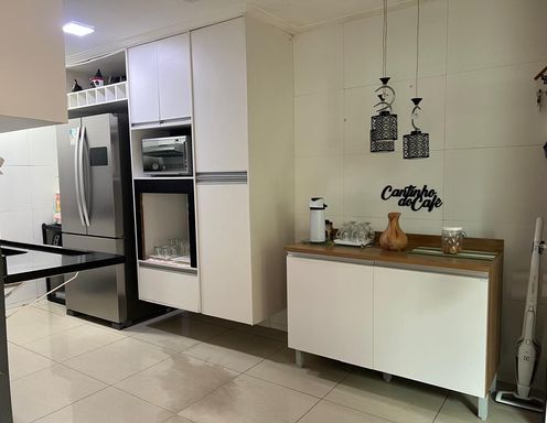 Casa Fundos Duplex: Garagem para 2 carros, varanda com área gourmet, sala grande, cozinha, 3 quartos (sendo 2 suítes), banheiro e área de serviço. Revestimento interno todo em porcelanato. Móveis planejados e ar condicionado inclusos na venda.