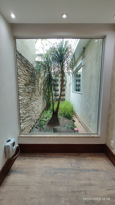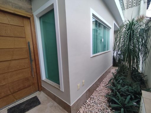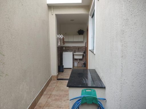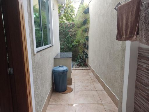 3 quartos, sendo duas suítes com closet, sala grande, copa, cozinha, banheiro social (sendo 3 no total, com box Blindex, bancadas em granito e porcelanato), jardim de inverno com vista na sala, garagem para 2 vagas cobertas, quintal e área de serviço.